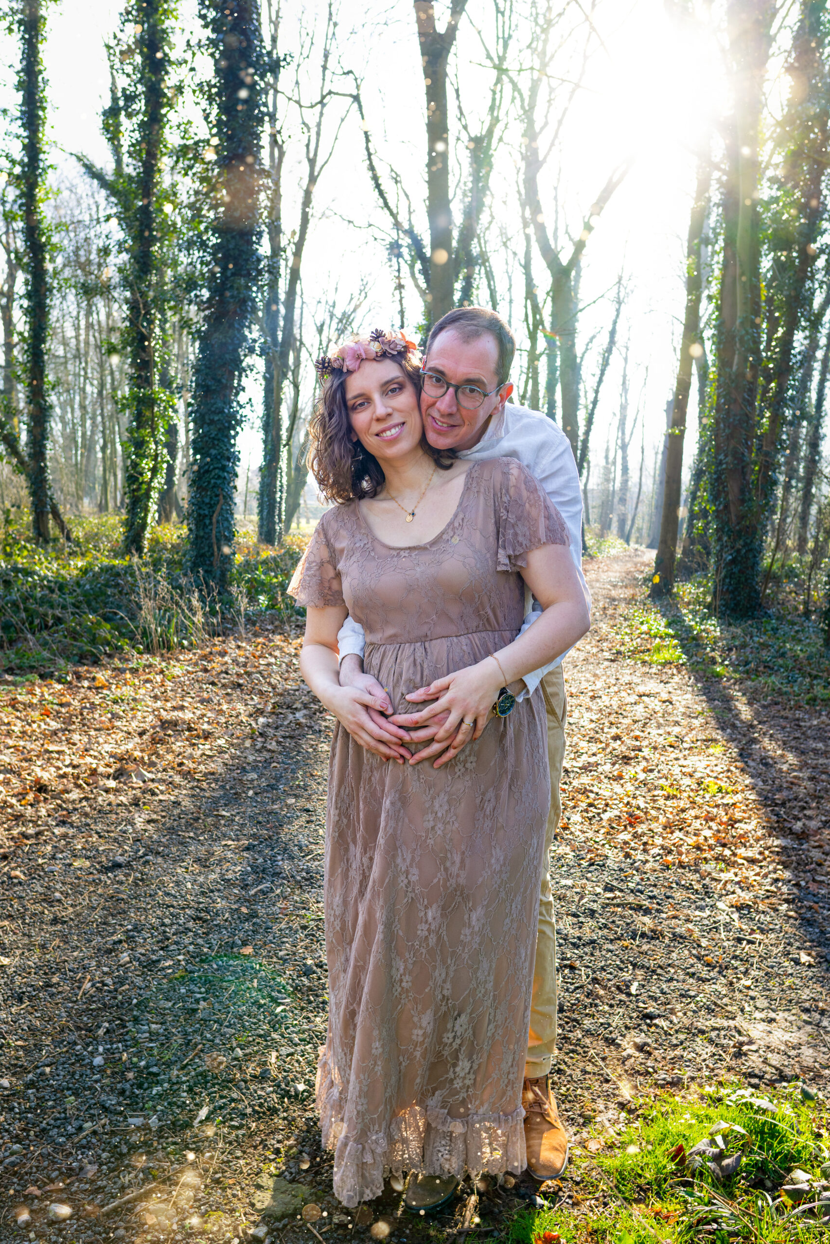 Pour profiter d’une lumière naturelle, douce et poétique, la séance photo de grossesse peut se dérouler en extérieur, dans un décor nature unique.