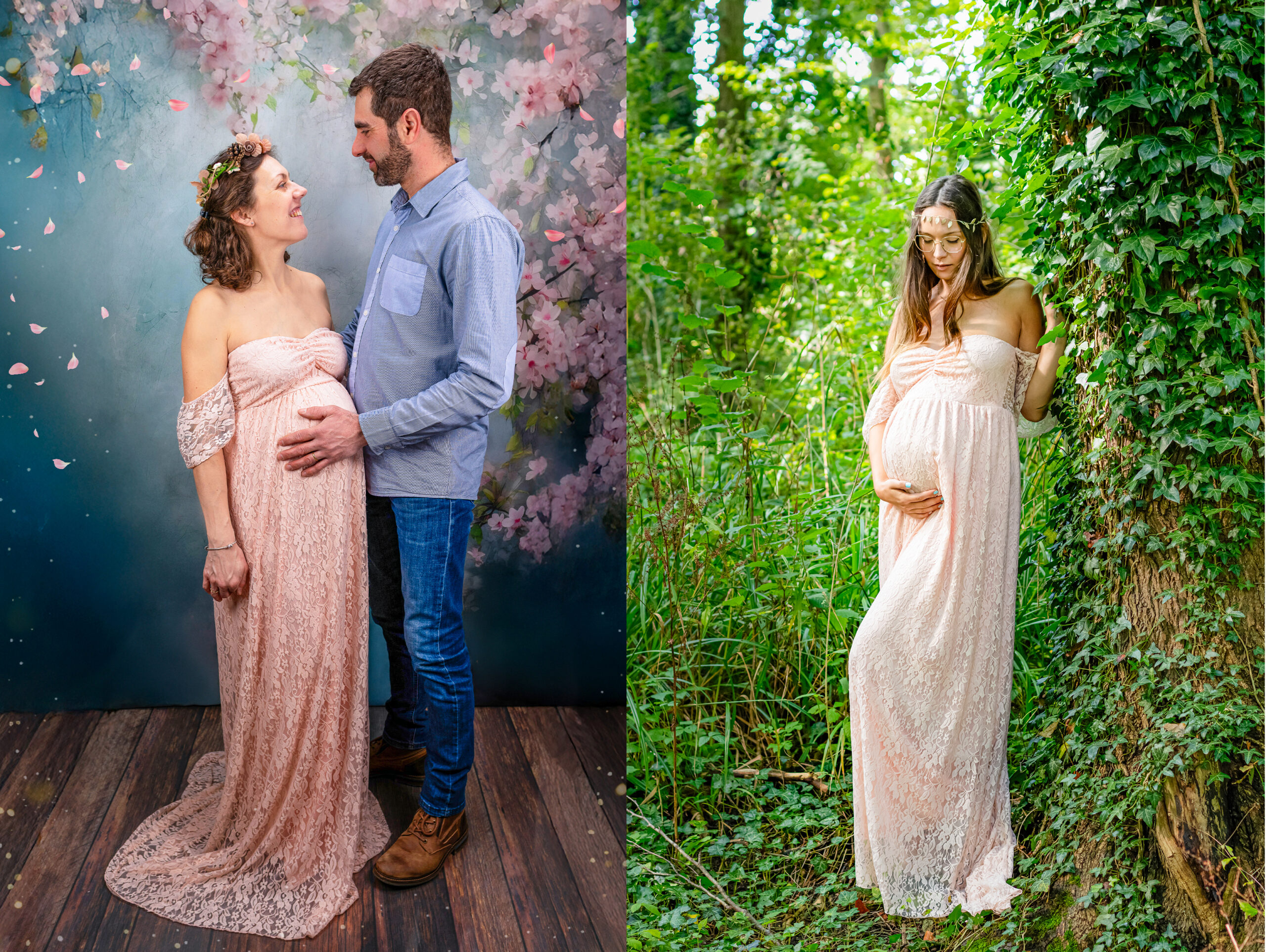 Indécise ? Je vous propose de mettre en lumière votre joli ventre rond en studio puis en extérieur.